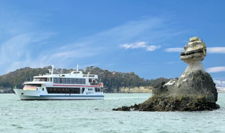 | 松島島巡り観光船 日本三景松島といえば外せないのが観光船での島巡り! 仁王丸コースは全長約17キロ(所要時間約50分)で見応えたっぷりです。松島海岸からでは決してみることのできない松島湾独特の島々や風景が楽しめます。 |